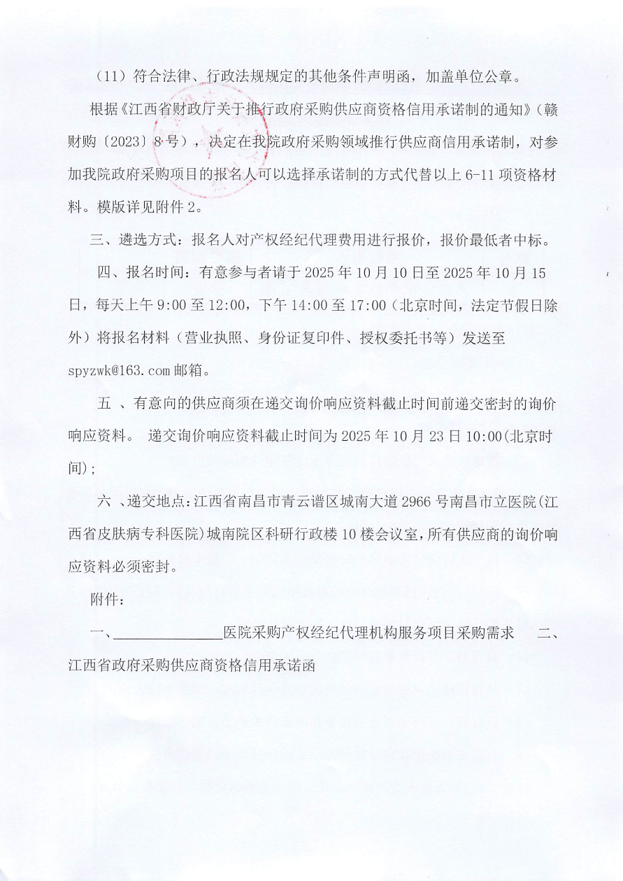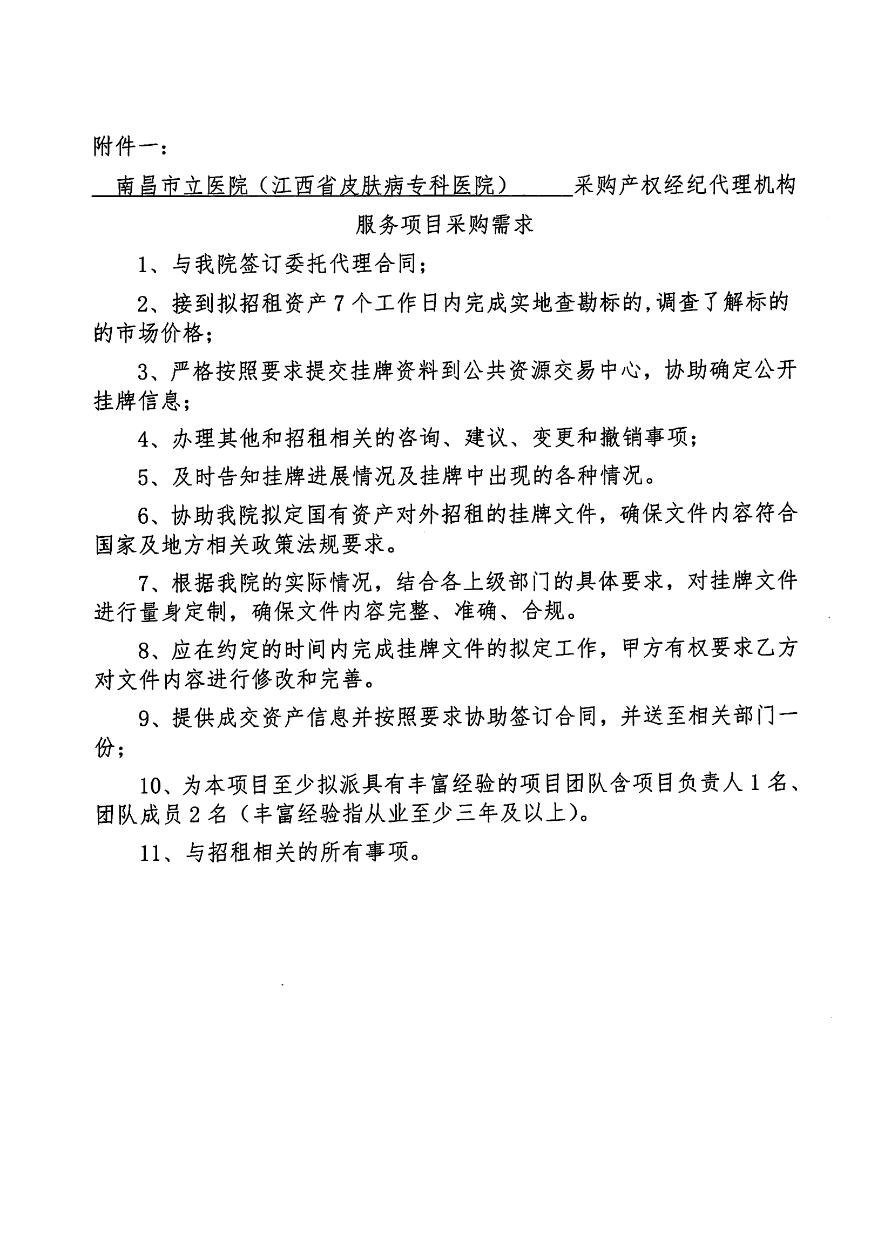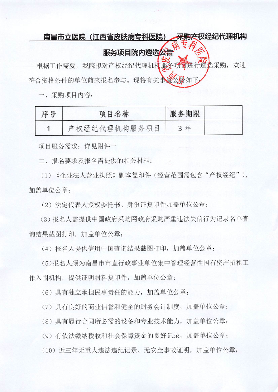 南昌市立医院(江西省皮肤病专科医院)采购产权经纪代理机构服务项目院内遴选公告