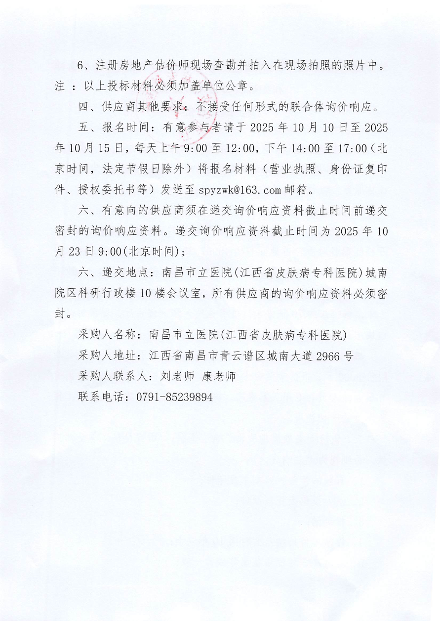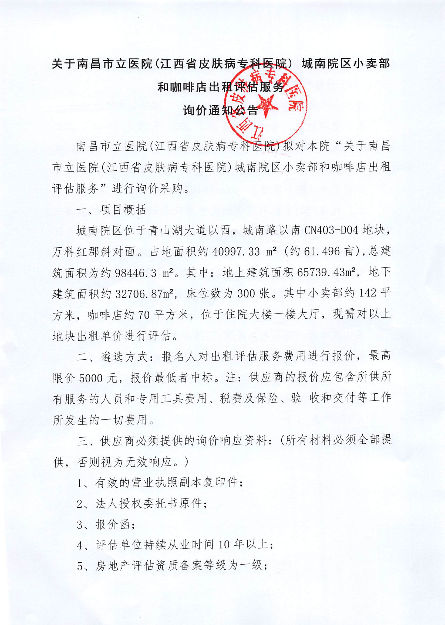 关于南昌市立医院(江西省皮肤病专科医院)城南院区小卖部和咖啡店出租评估服务询价通知公告