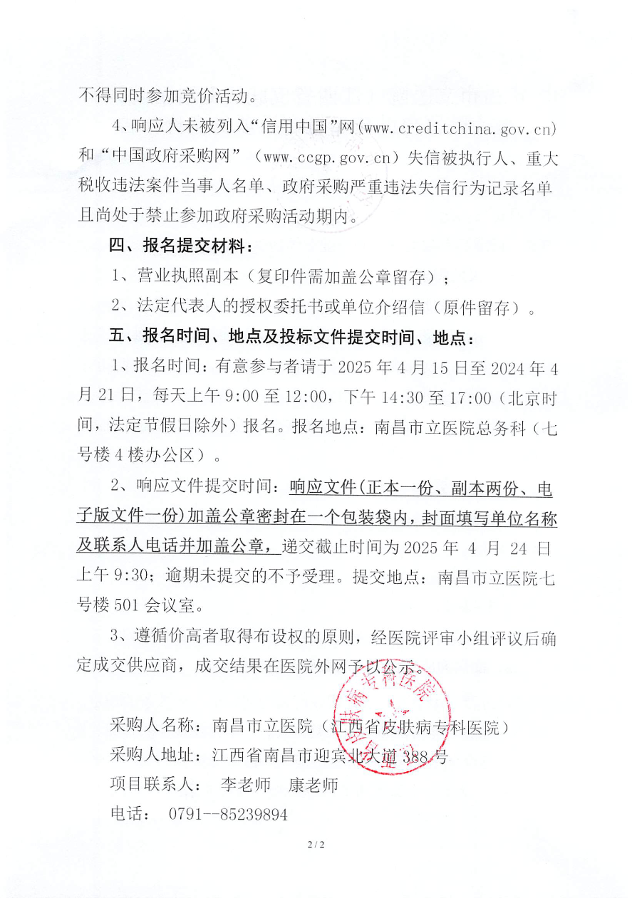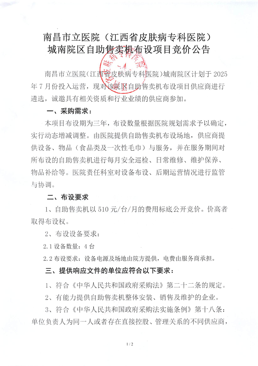 南昌市立医院(江西省皮肤病专科医院)城南院区自助售卖机布设项目竞价公告