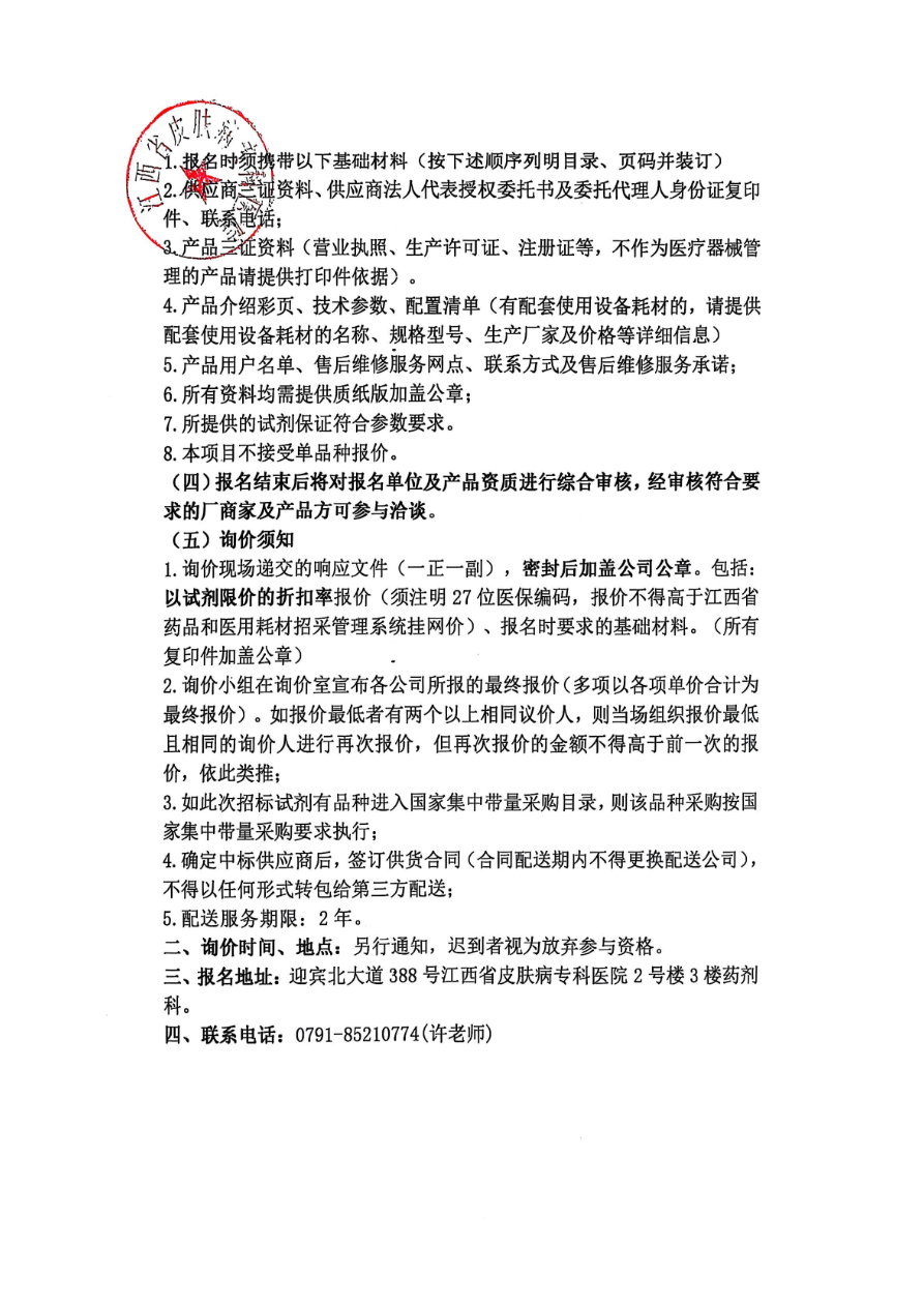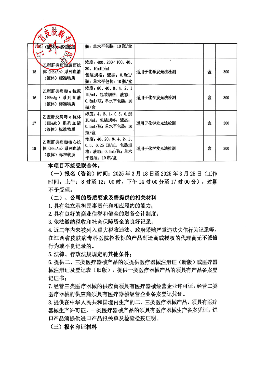 江西省皮肤病专科医院医学检验室内质控品采购意向/市场调研公告