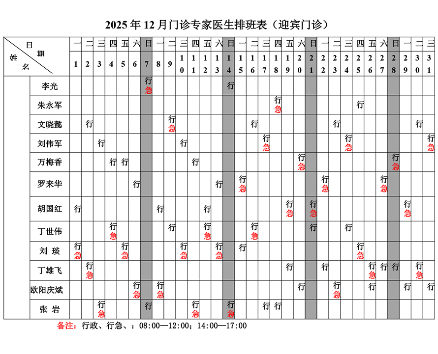 2025年12月份总院门诊医生排班表(迎宾门诊)
