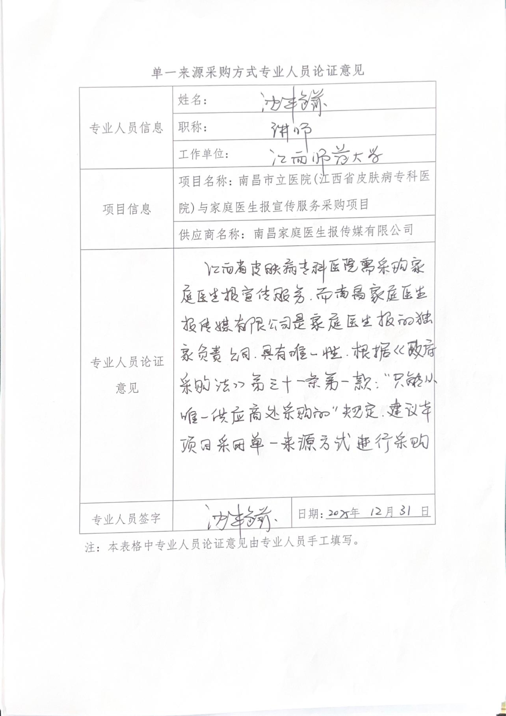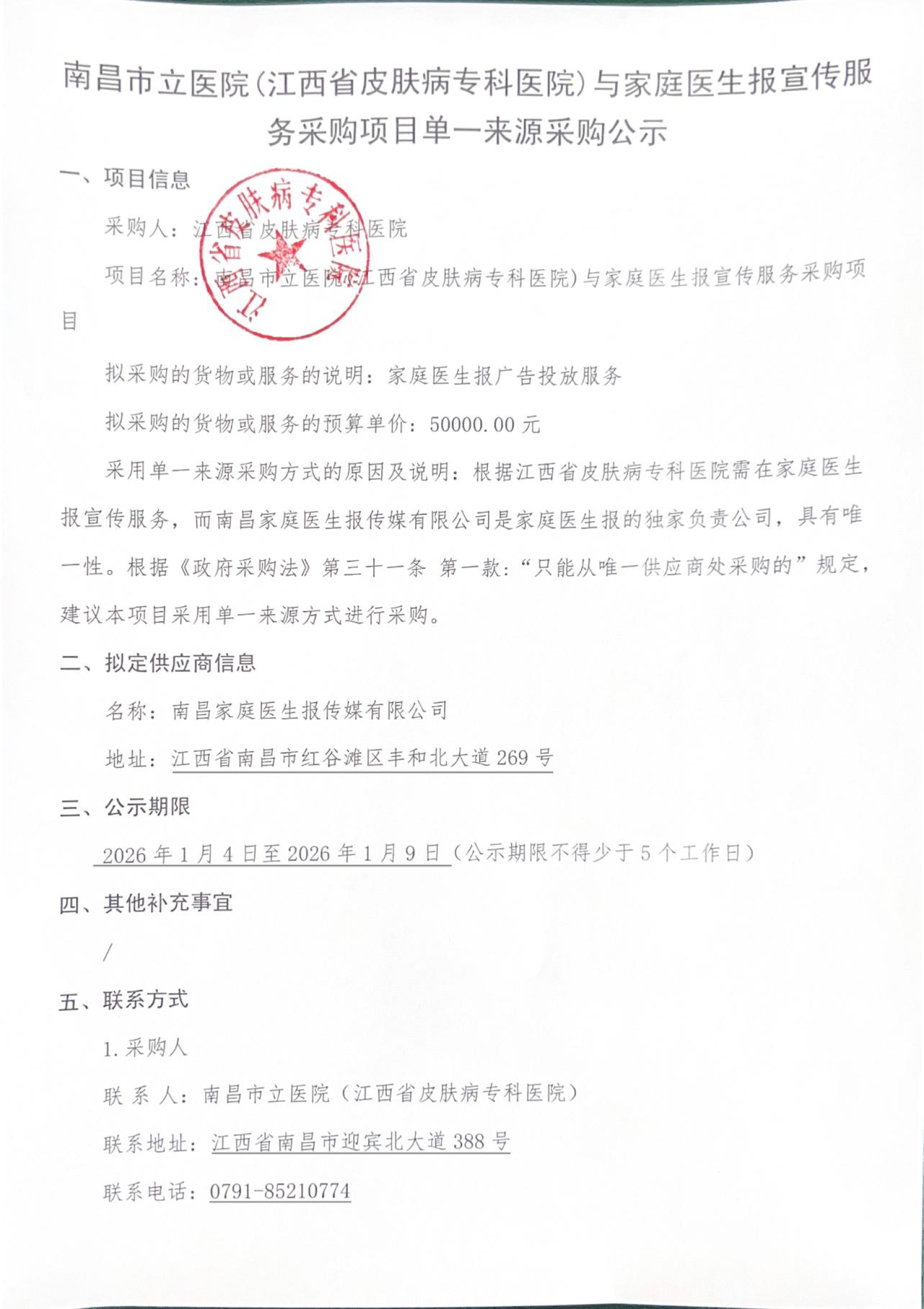 南昌市立医院(江西省皮肤病专科医院)与家庭医生报宣传服务采购项目单一来源采购公示.pdf