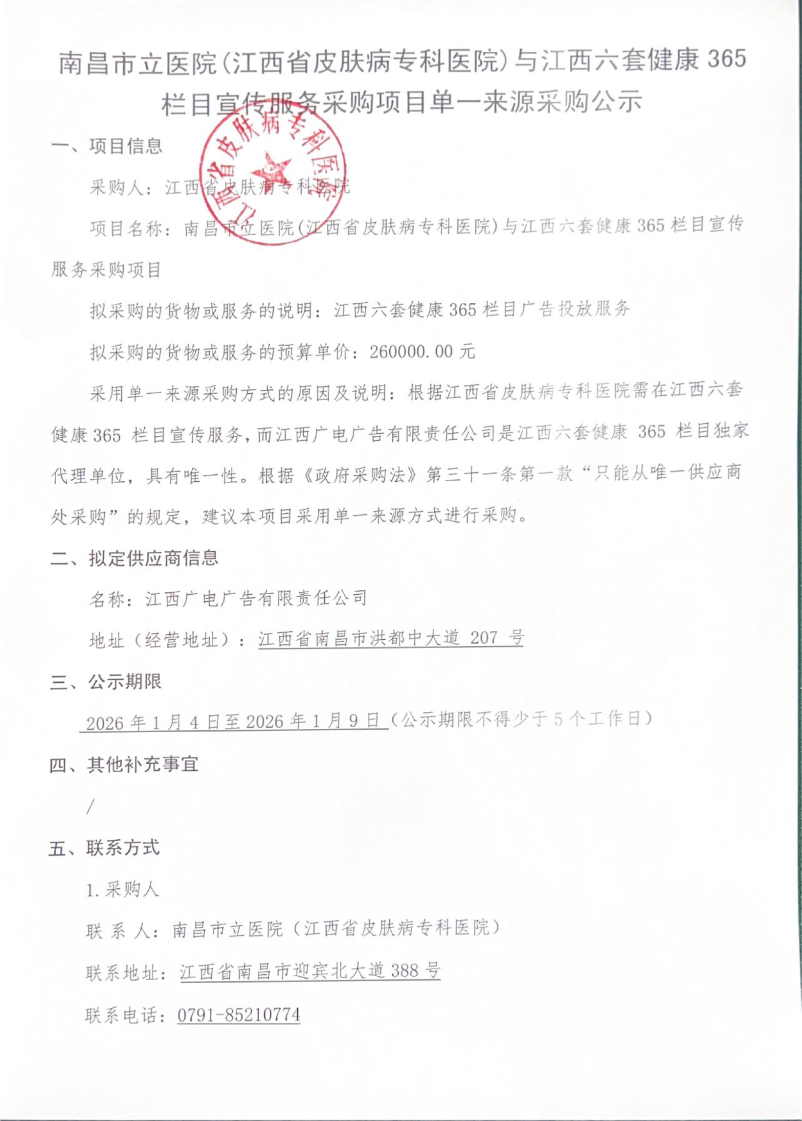 南昌市立医院(江西省皮肤病专科医院)与江西六套健康365栏目宣传服务采购项目单一来源采购公示.pdf