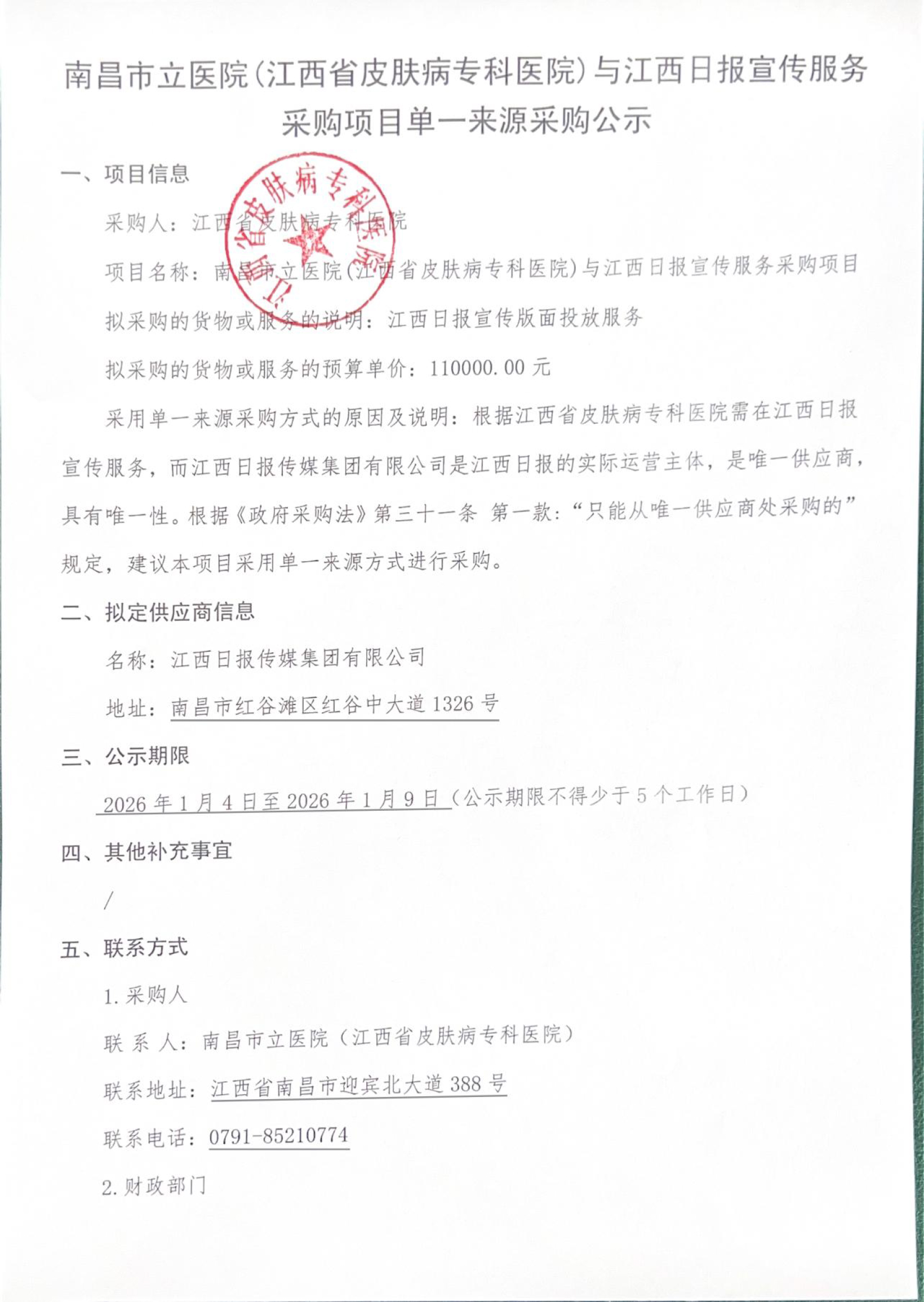 南昌市立医院(江西省皮肤病专科医院)与江西日报宣传服务采购项目单一来源采购公示.pdf