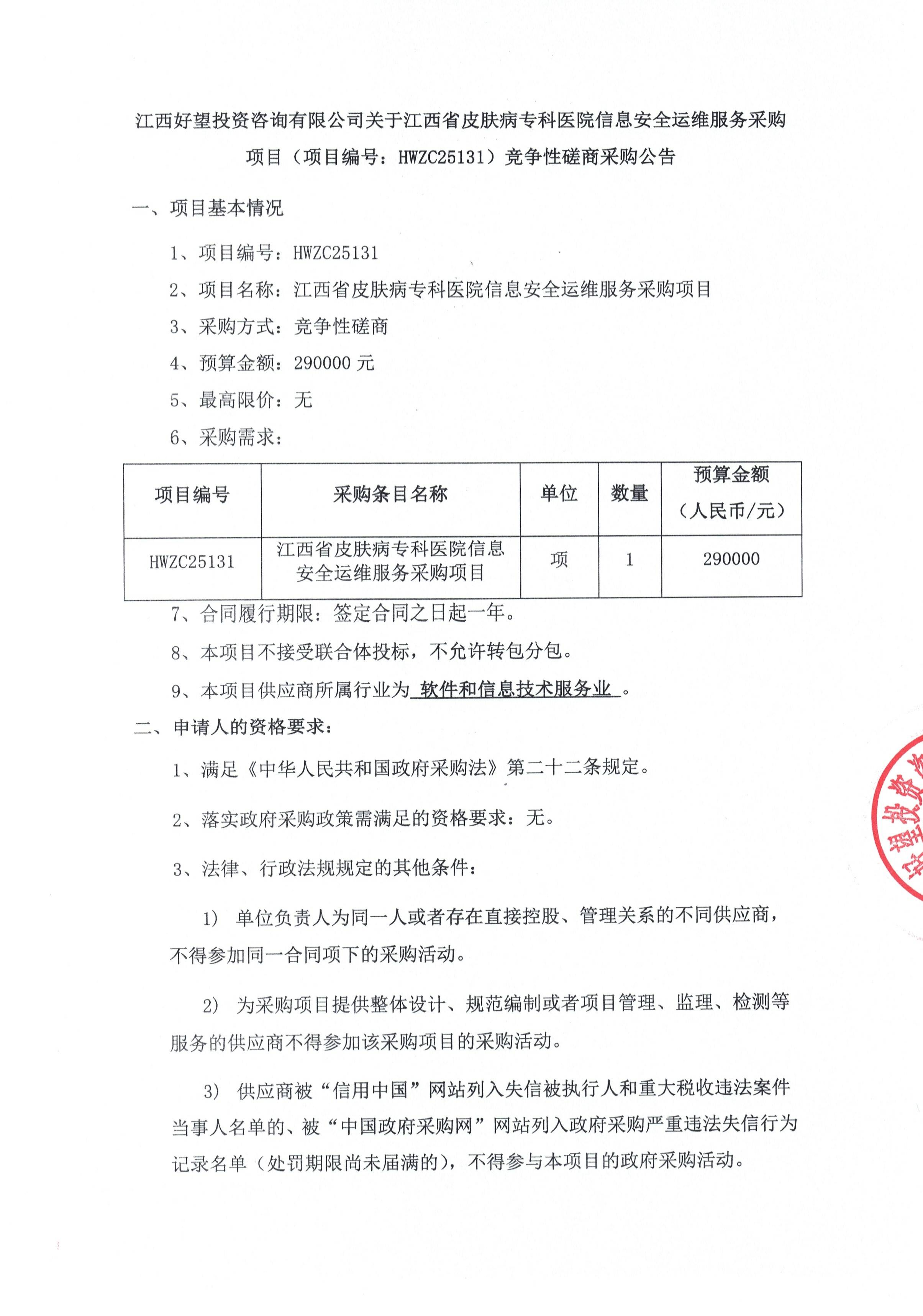 (采购公告:HWZC25131)信息安全运维服务采购项目