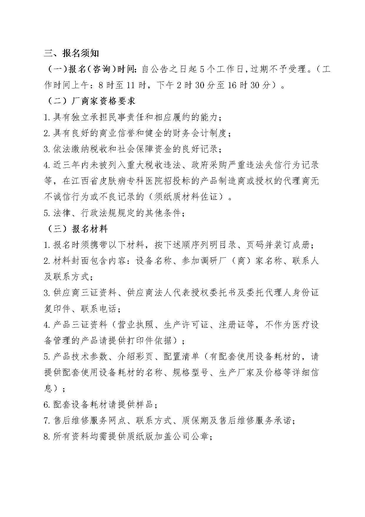 快速脱水机等设备项目江西省皮肤病专科医院采购意向/市场调研公告