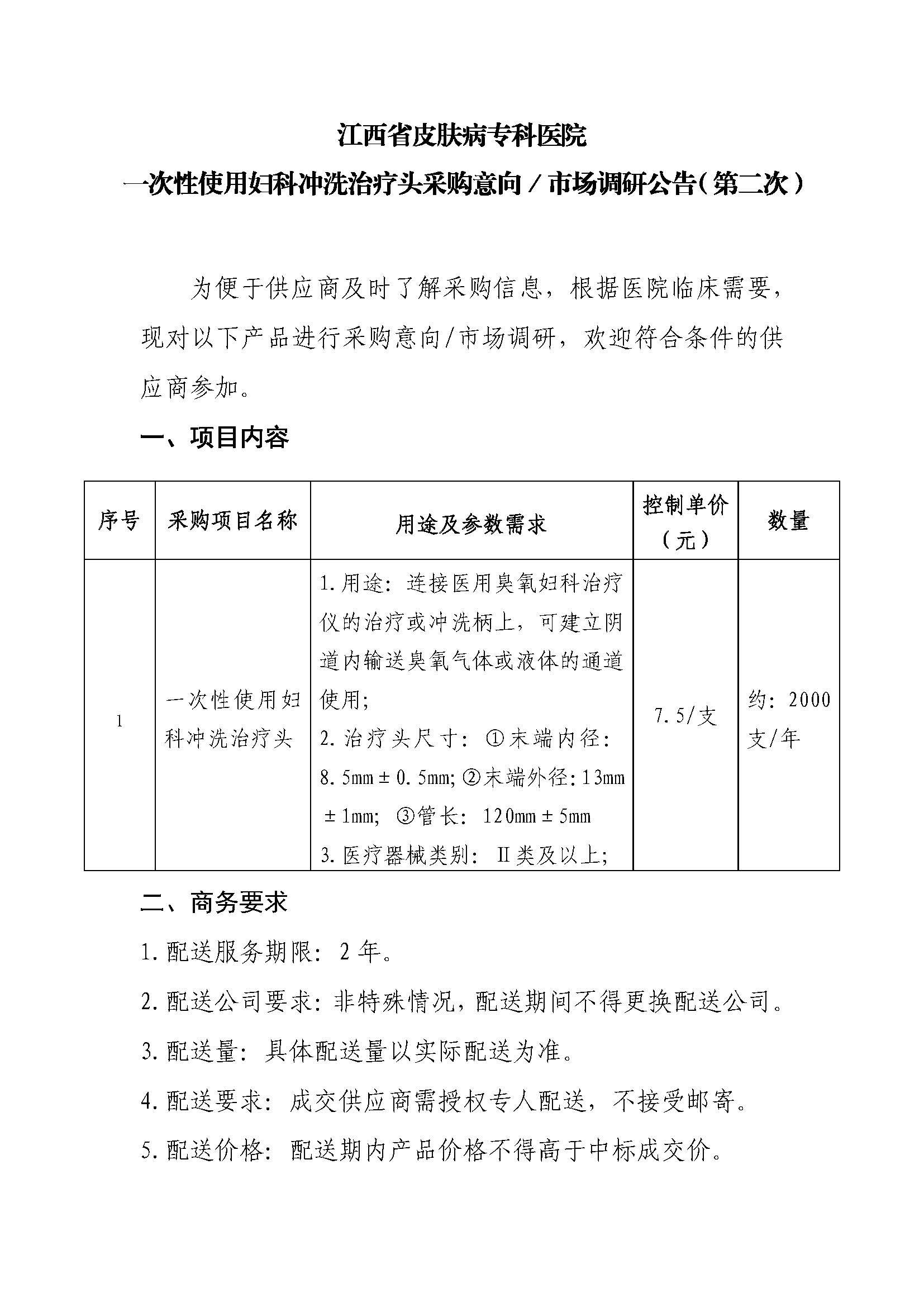 江西省皮肤病专科医院一次性使用妇科冲洗治疗头采购意向/市场调研公告(第二次).docx