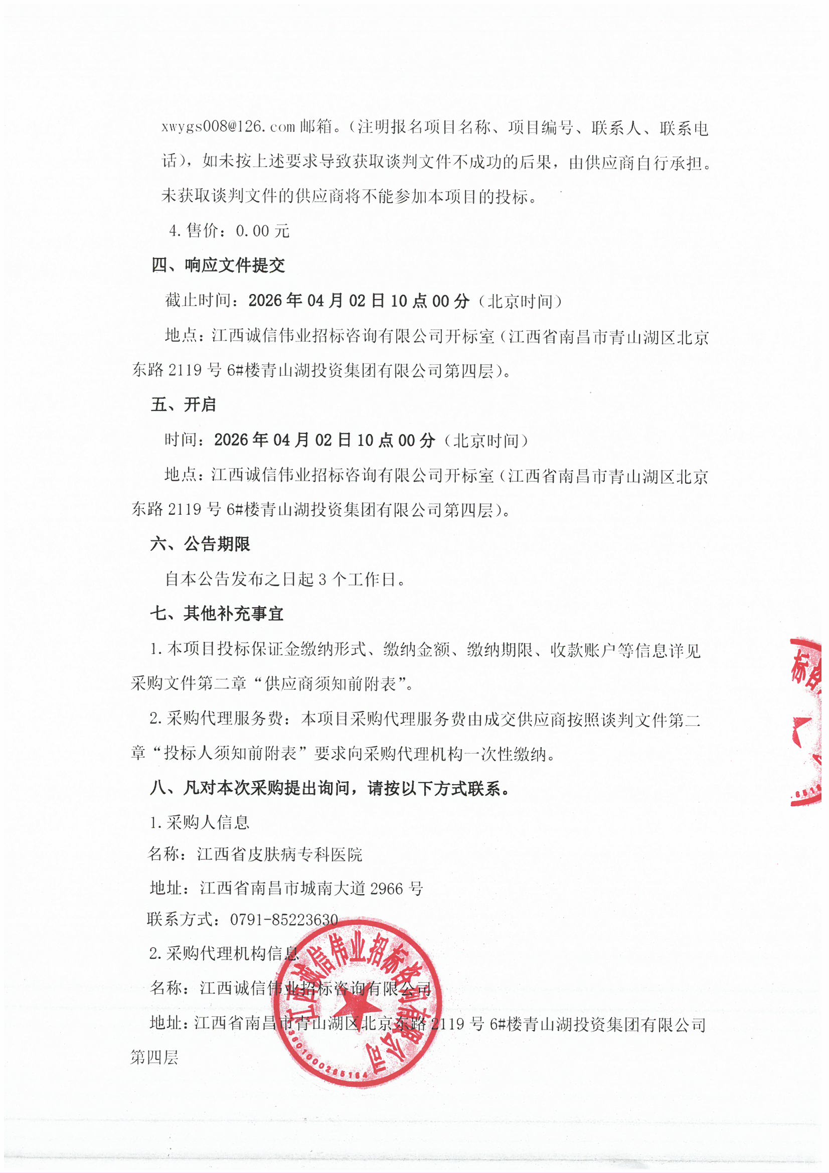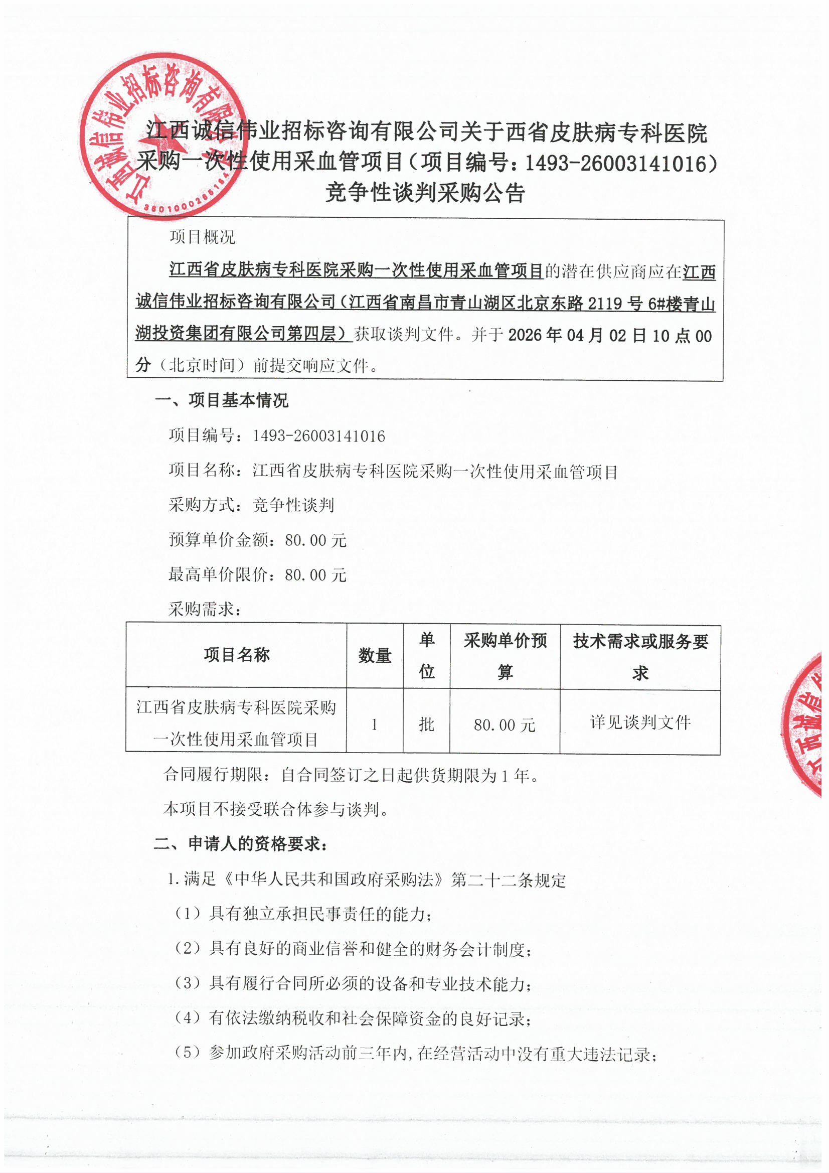 江西诚信伟业招标咨询有限公司关于江西省皮肤病专科医院采购一次性使用采血管项目(项目编号1493-26003141016)竞争性谈判采购公告.pdf