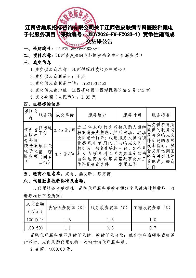 江西省鼎跃招标咨询有限公司关于江西省皮肤病专科医院档案电子化服务项目(采购编号:JXDY2026-FW-F0033-1)竞争性磋商成交结果公告.pdf