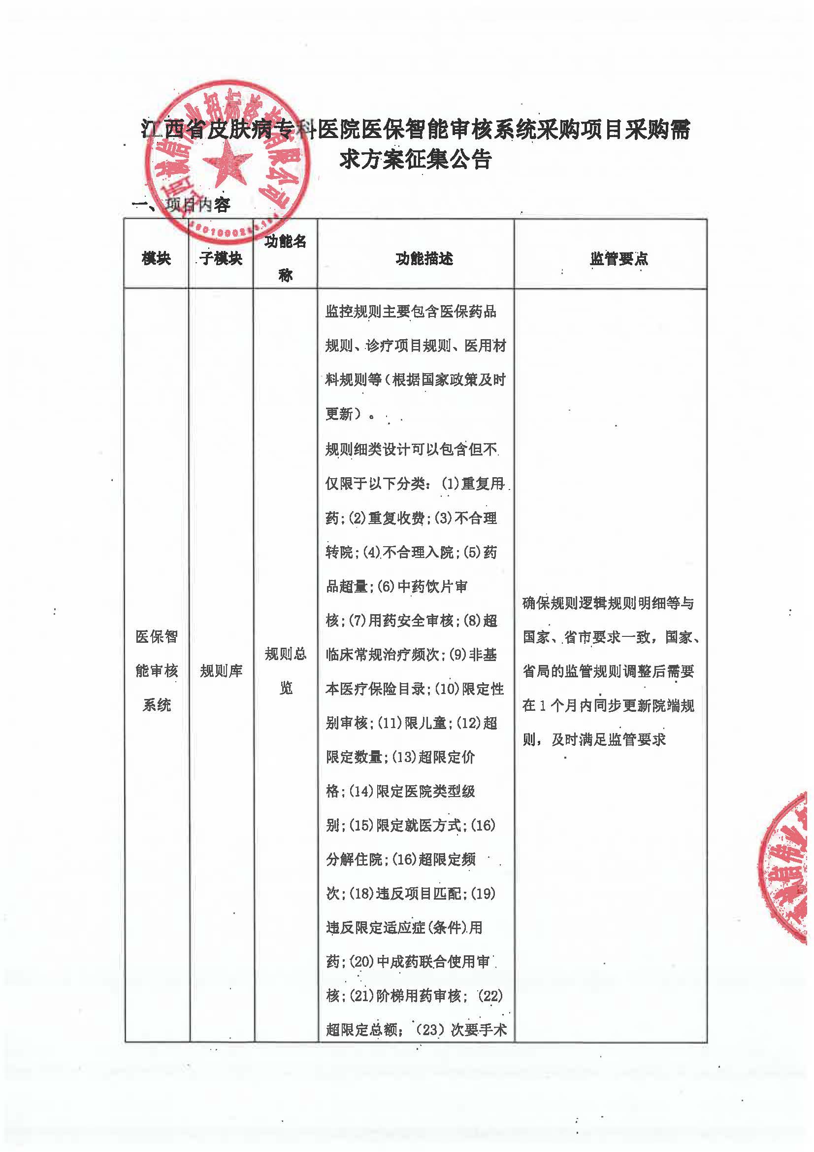 江西省皮肤病专科医院医保智能审核系统采购项目采购需求方案征集公告